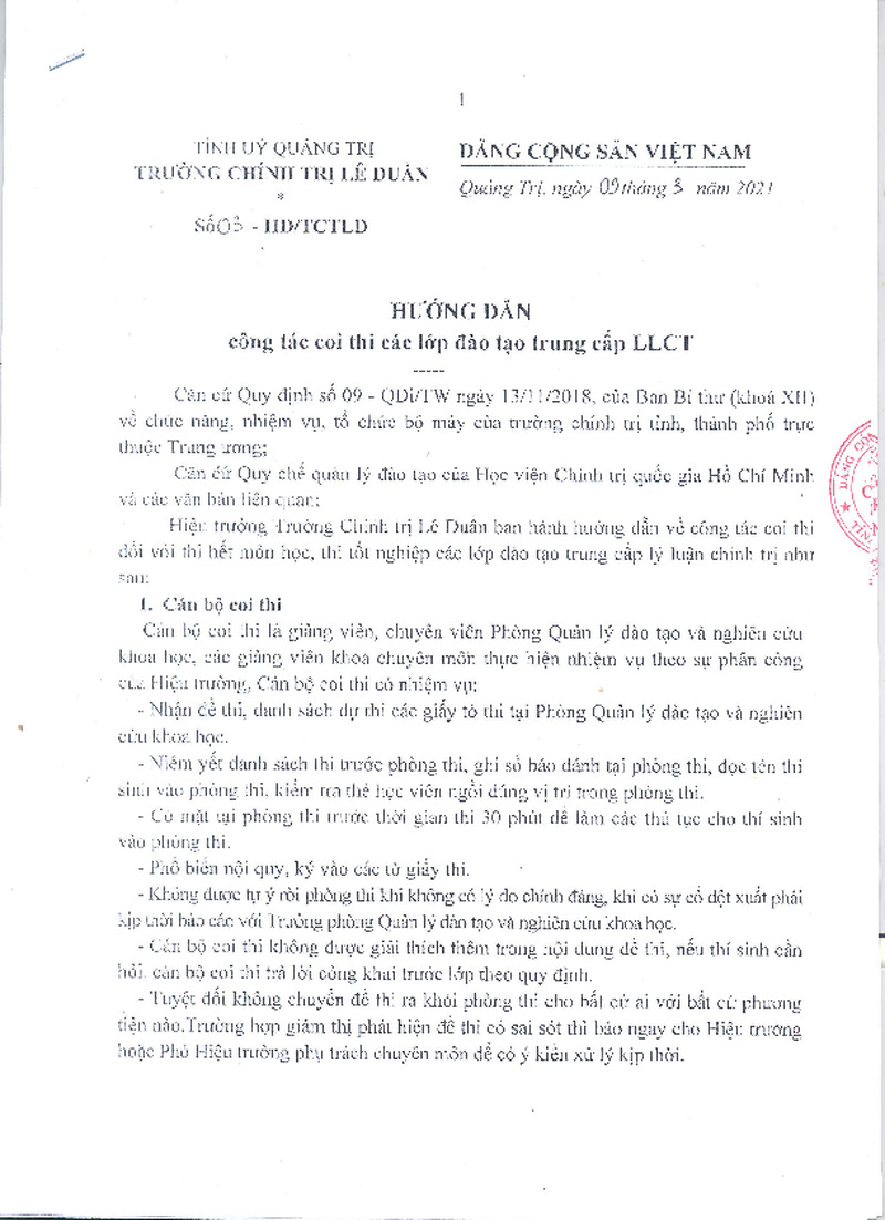 | Tiêu đề văn bản | Hướng dẫn công tác coi thi lớp đào tạo trung cấp LLCT | ||