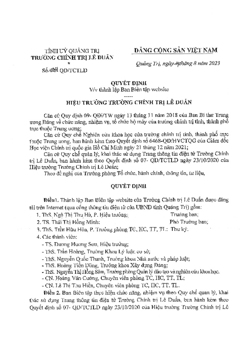 | Tiêu đề văn bản | Quyết định thành lập Ban Biên tập Website | ||