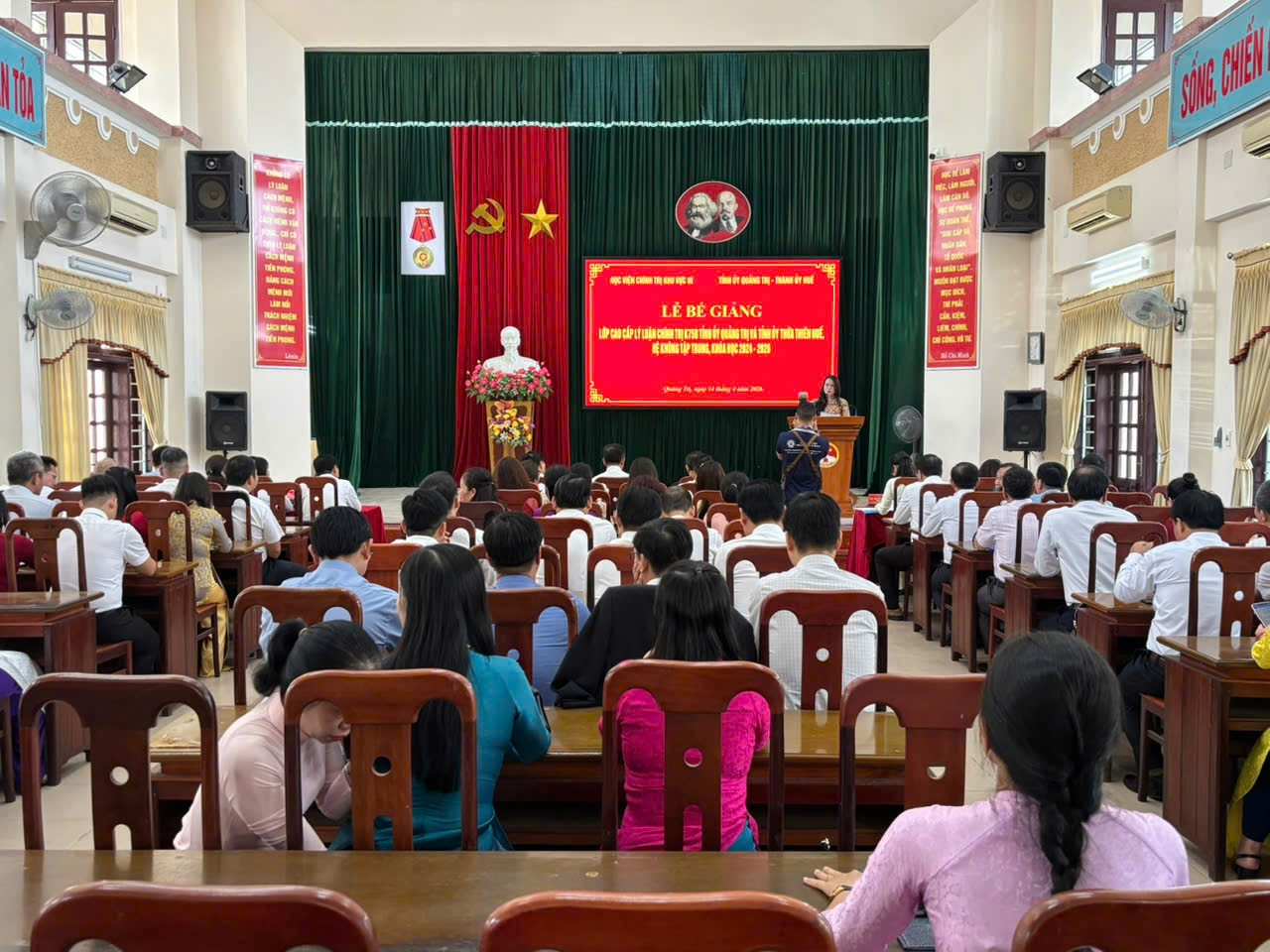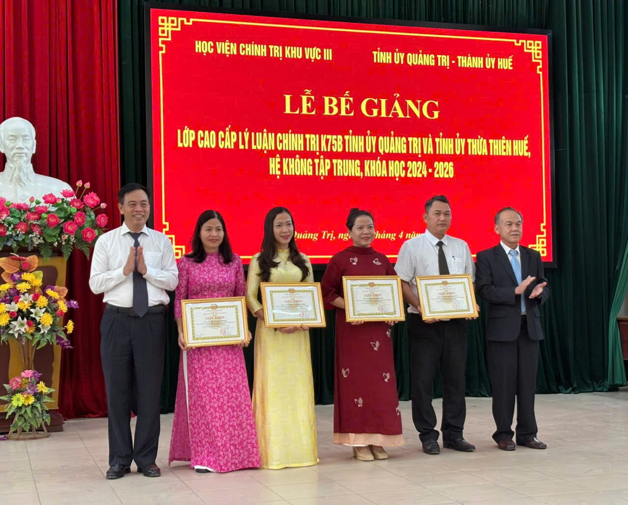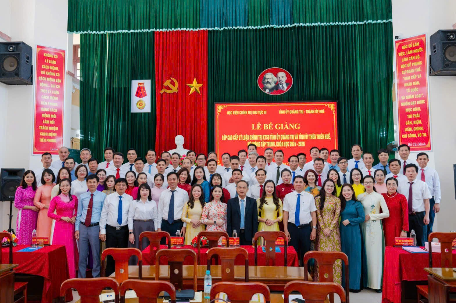 Chiều 14/4/2026, tại Trường Chính trị Lê Duẩn, Học viện Chính trị khu vực III phối hợp với Tỉnh ủy Quảng Trị và Thành ủy Huế tổ chức Lễ Bế giảng Lớp Cao cấp lý luận chính trị K75B Tỉnh ủy Quảng Trị và Tỉnh ủy Thừa Thiên Huế, hệ không tập trung, khóa học 2024-2026.