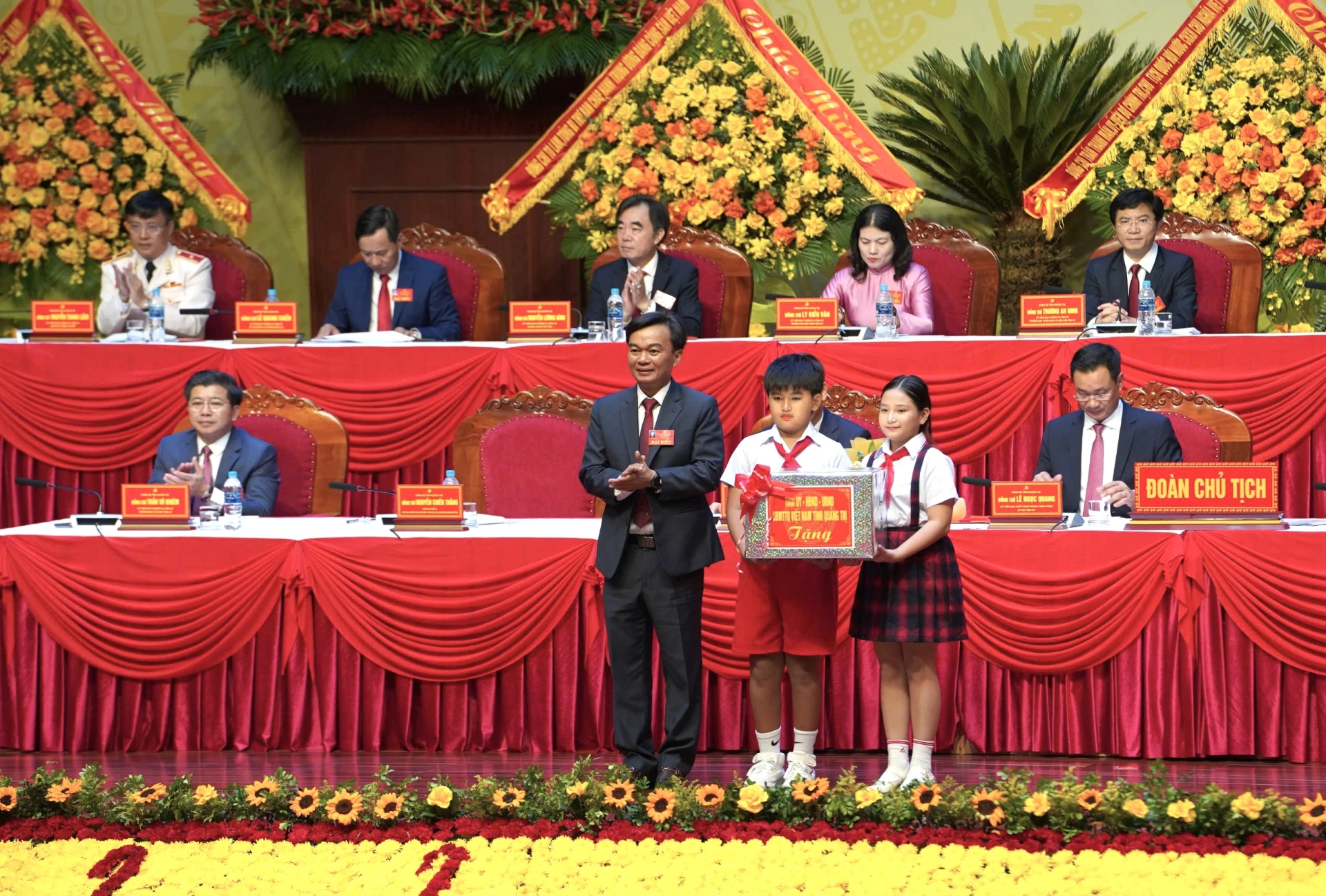Đồng chí Nguyễn Chiến Thắng, Phó Bí thư Tỉnh ủy, Chủ tịch Ủy ban MTTQ Việt Nam tỉnh, Phó Chủ tịch HĐND tỉnh tặng quà cho các đại biểu thiếu nhi.